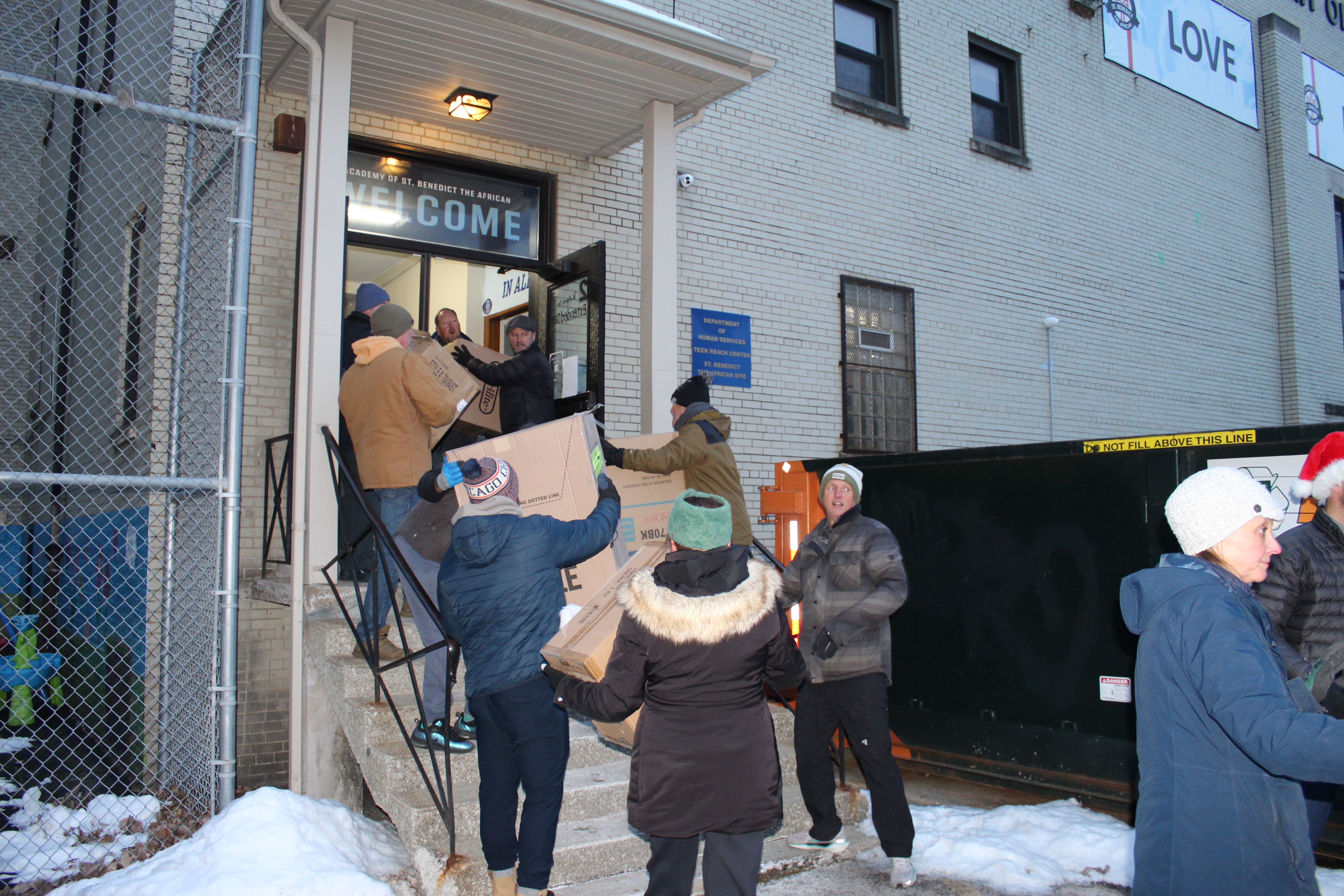 The Directors wheel the carts outside and load the bags into vans and trucks to send the food on its way to people who would have had very little to celebrate with otherwise. Every household gets a gift certificate for more groceries, too.